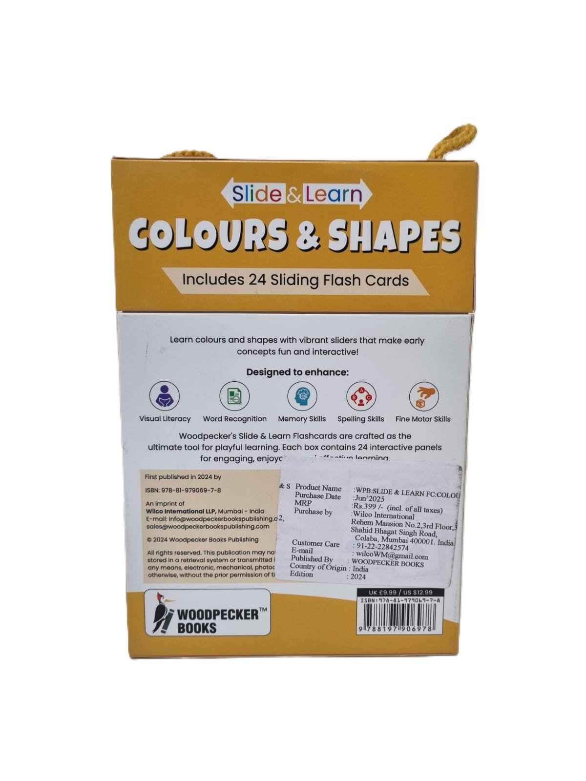 Introduce your child to the world of colors and shapes with this interactive set of 24 sliding flash cards. Designed for children aged 3 and up, these cards feature vibrant, real-world images and a “slide-to-reveal” mechanism that turns learning into a fun, hands-on game of discovery.